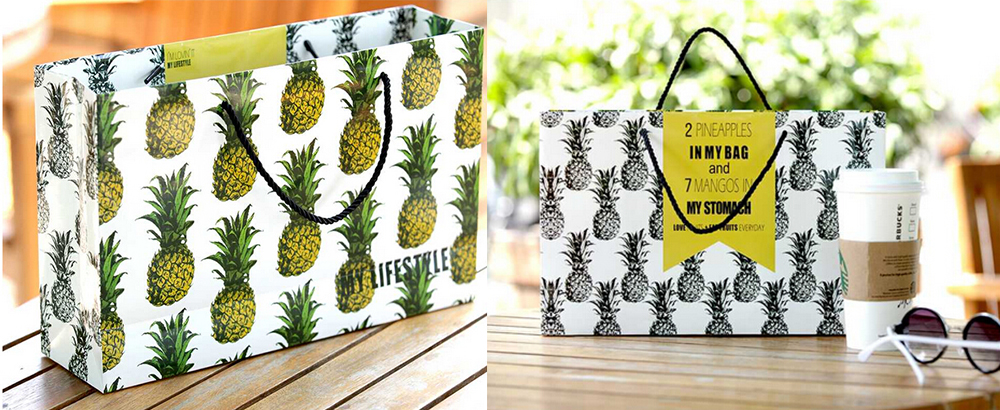 菠蘿大橫時尚化妝品銅版紙袋定制